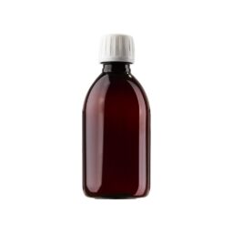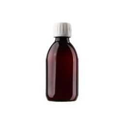 Butelki plastikowe typu SYRUP PET AMBER z gwintem o średnicy 28 mm oraz z nakrętką HDPE 28 mm z wkładką uszczelniającą z pierścieniem gwarancyjnym.